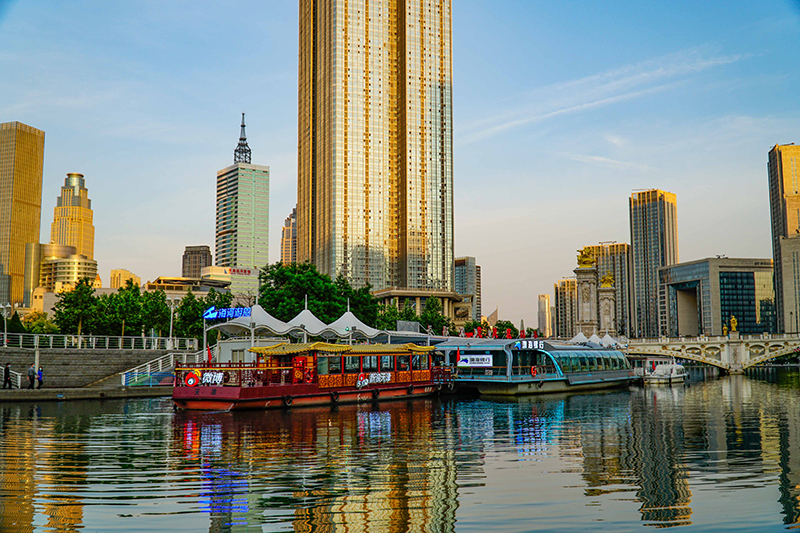 天津地处九河下稍,河道纵横交错,素有“北方水都”之称;长72公里的海河,逶迤穿城而过注入渤海,形成了独特的水路风光游览线。经过综合开发改造的海河已日益显现出作为经济带、文化带和景观带的强大服务功能。荡舟碧波上,可纵情饱览海河两岸的现代化城市风光,两岸的食、住、行、游、购、娱等旅游元素凸显出天津的魅力。依河而立的古文化街等特色文化旅游风情区,更加展现了海河的迷人神韵。