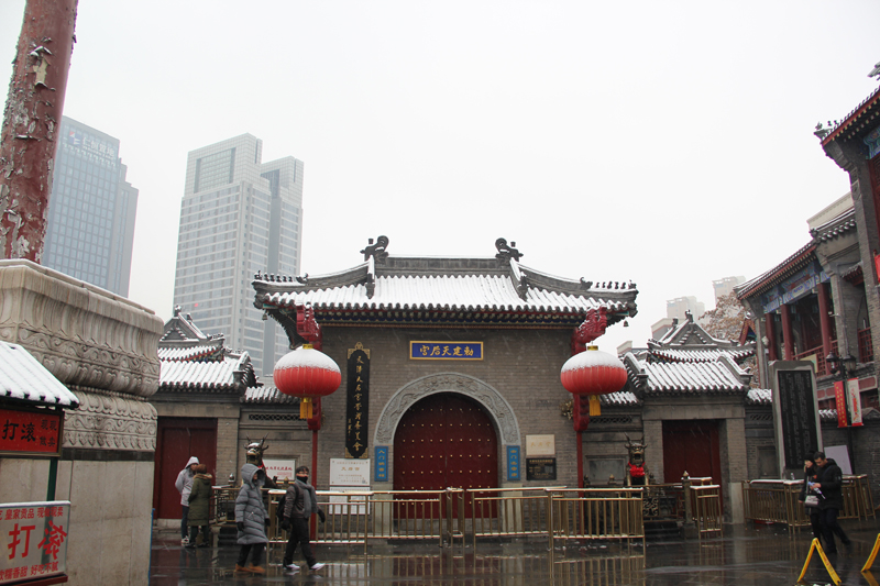 天津市民俗博物馆(天后宫)天津天后宫是国家AAA级景区、天津市文物保护单位,是集妈祖文化、天津地域民俗文化、民间信仰研究及展览、游览功能于一体的综合性民俗博物馆。元至元十五年至二十年间(1278-1283年)初建,元泰定三年(1326年)由元政府正式下诏敕建,1985年大规模重建,同时成立天津市民俗博物馆。天津天后宫坐西朝东,占地5360平方米,从东至西由戏楼、幡杆、山门、牌坊、前殿、正殿、凤尾殿、藏经阁、财神殿、关帝殿、启圣祠以及钟楼、张仙阁和四座配殿组成。1985年重建之后,除保留天后宫复原陈列展览为,还陆续开辟了以展示天津民俗民风为基础内容的陈列展览,比较系统地介绍了漕运、婚育、商业、民间生活、民间艺术及民间信仰等习俗内容。