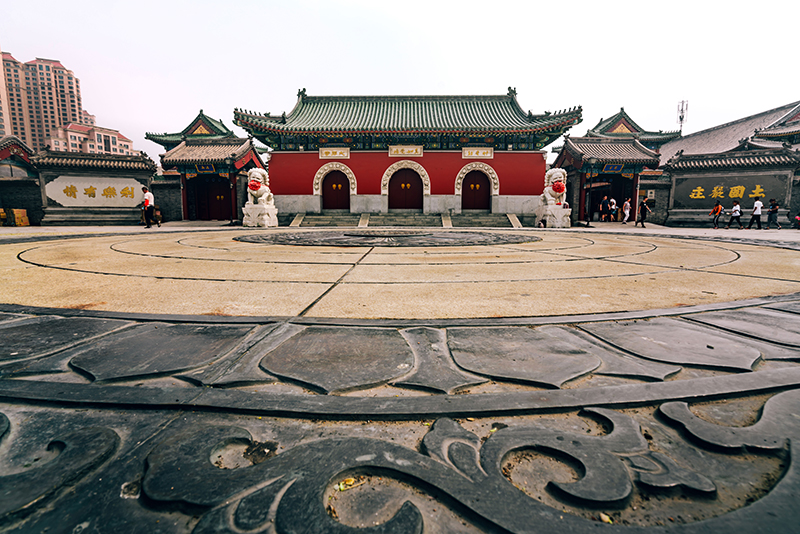 大悲禅院座落在天津市河北区天纬路中段东北侧,因供奉大慈大悲观世音菩萨而得名,是天津现存规模最大、历史最为悠久的佛门十方丛林寺院。寺始建於明末清初,又兴於康熙八年,盛时占地五十六亩。后因沧桑变革,几多兴废,唯余现存西院,规模较小。1942年天津佛教界邀请近代高僧天台宗四十四世祖倓虚大师来津主修扩建全寺,历时五年于寺东侧陆续建成天王殿、大雄宝殿、大悲殿、东西配殿等建筑群,连同园林八千余平方米。寺自重建,殿宇崇峻,青砖绿瓦,宏伟壮观。解放后政府又重为油饰佛殿廊房,增修四周山墙,建造寮房,以作僧人生活之用。又请著名甲骨文专家,天津市文史馆首任馆长王襄先生题写篆文“古剎大悲禅院”镌刻山门之上。十年浩劫中,寺内被洗劫一空,破坏严重。“文革”过后,落实党的宗教政策,1980年开始修复工作,并重塑全堂佛像。1983年经国务院批准为全国重点开放寺院,1986年正式对外开放。 大雄宝殿正中供奉释迦佛祖金身像为明代铜铸,连同千佛莲花底座通高五米,重约六吨。铜像线条清晰和谐,铸工精细,堪称佛门奇宝,被列为国家二级文物。念佛堂所供奉的毗卢遮那佛造像,铜色古老,塑型精美,据考为唐代铜铸,也系佛门瑰宝,国内珍贵文物。寺内还藏有铜、木、石、玉雕佛像、泥塑佛像及龙、狮、虎、豹、鸾凤等飞禽鸟兽雕像及车、棺、碑等雕塑数百余件,大多都是魏、晋、南北朝、隋、唐、元、明、清以来的文物,极具赏鉴考古价值。寺内原有镇寺之宝——唐代高僧玄奘法师顶骨舍利,系1945年由南京请来专设纪念堂供奉。1956年应印度政府请求,经周恩来总理批示,将顶骨送往印度昔日玄奘法师求法地那烂陀寺遗址供奉,成为中印两国人民友好交往的一段佳话。尽管顶骨不在了,但保留的纪念堂及内中的模拟塔却永远昭示铭记着大悲禅院与玄奘法师的千古因缘。弘一大师纪念堂为1956年由著名居士龚望先生向当时寺主惠文法师提议而专设的,原有展件多幅,都是大师真迹,可惜在文革期间尽数丟失,现展示作品皆为影印件;堂内供奉弘一法师盘膝端坐铜像,高约一米,神情安逸,满面慈祥,此像系大师弟子前新加坡佛教总会主席广洽法师捐资铸造。纪念堂设立与复建以来,乡人多前来瞻仰参拜以作怀念。
