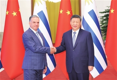 习近平指出,当今世界正处于百年未有之大变局,国际形势变乱交织,单边霸凌愈演愈烈,中方支持乌拉圭接任“77国集团和中国”轮值主席国,愿与乌方加强全球南方团结协作,共同推进平等有序的世界多极化、普惠包容的经济全球化,携手并进、共谋发展,为构建人类命运共同体作出更大贡献。中方始终重视中拉关系,支持拉美和加勒比国家维护自身主权、安全、发展利益,支持乌拉圭接任拉美和加勒比国家共同体以及南方共同市场轮值主席国,愿同乌方和地区国家推动共建中拉命运共同体走深走实。