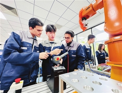 天津现代职业技术学院巴基斯坦鲁班工坊学历教育留学生观摩2025年世界职业院校技能大赛。