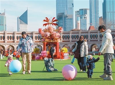 1月13日,天气晴好,众多市民和外地游客来到民园广场享受冬日惬意时光。