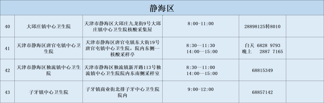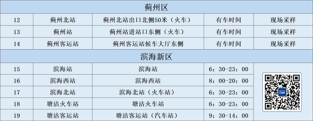 为方便我市居民就近进行新冠病毒核酸检测,保障居民“愿检尽检”的需求,天津市卫生健康委积极推进我市各区新冠病毒核酸检测采样点建设。按照“就近、就便”原则,自2022年1月1日起,在主要交通场站和基层医疗机构设置便民新冠病毒核酸检测采样点。现将首批采样点信息予以公布。