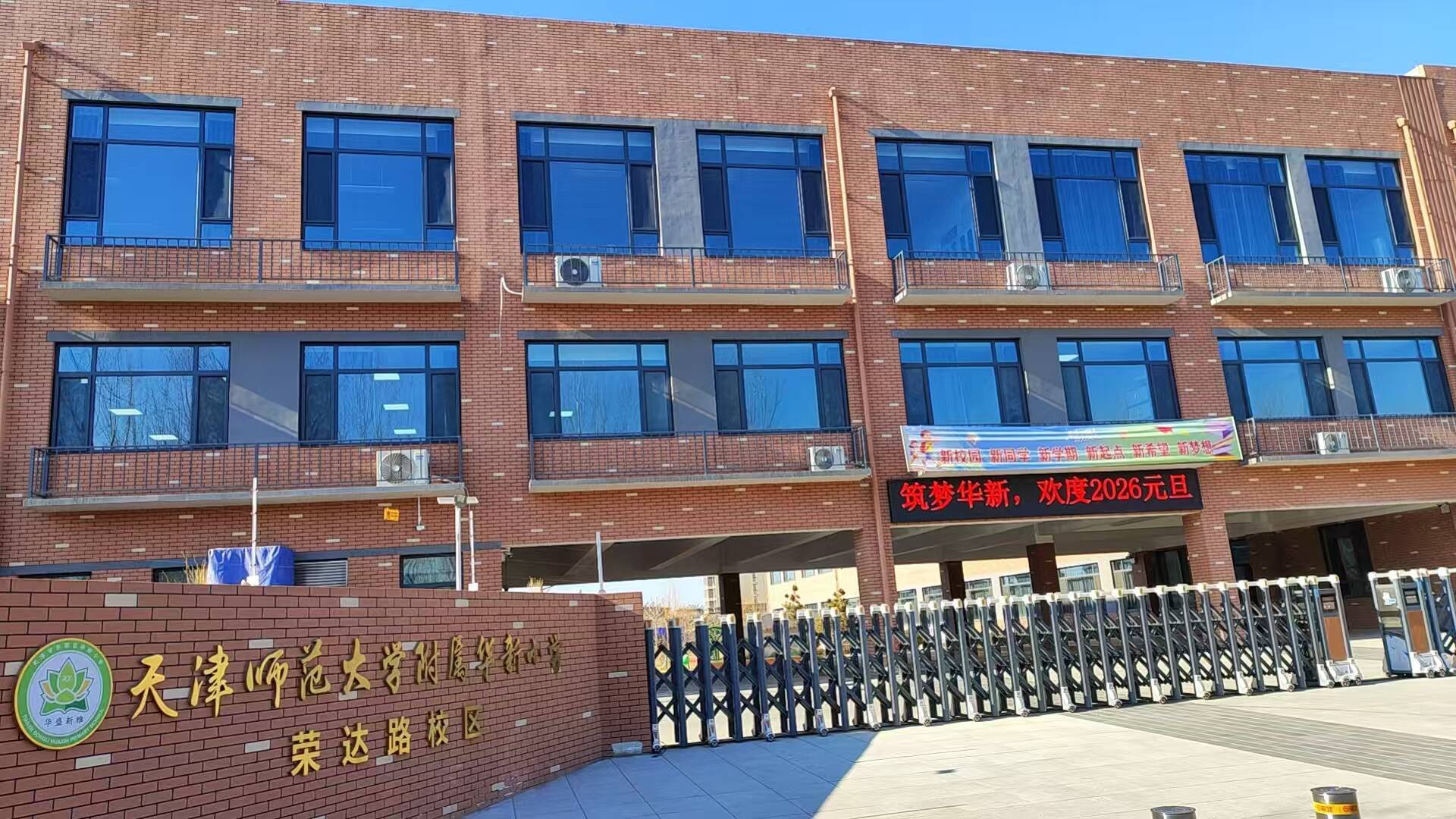 作为天津市20项民心工程重点项目,天津师范大学附属华新小学(荣达路校区)2025年9月正式启用。学校坐落于天津市东丽区华明街道荣达路60号,用地面积14169平方米,建筑面积约为8761平方米,学校内设多功能体育馆、图书阅览室、多媒体教室、科学实验室及音乐美术等专用教室。学校现有26个教学班,学生994名,教师65名。学校通过公办委托管理模式,依托华新小学教育集团师资队伍,引入天津师范大学教育集团先进的教育理念和办学资源,构建了智慧启智、文化铸魂、家校协同、理想发展的现代化育人体系,让孩子们在全面发展中实现学业与成长的双重提升,为每一位孩子的成长奠基。