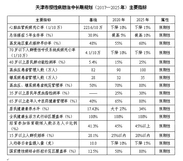 天津市人民政府办公厅关于印发天津市防治慢性病中长期规划(2017—2025年)的通知