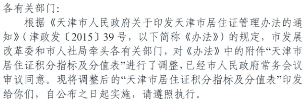 市发展改革委市人社局关于印发天津市居住证积分指标及分值表的通知