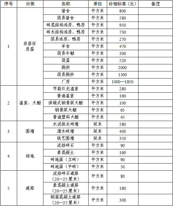 附件:1.非居住房屋及附属设施补偿标准