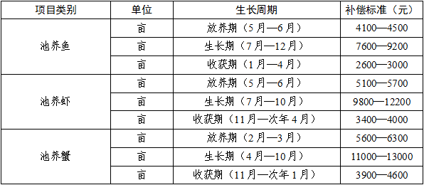 水产养殖补偿标准