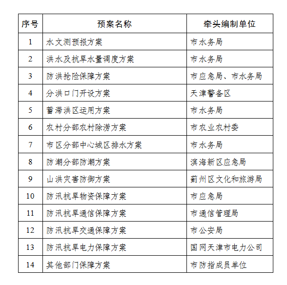 2.天津市防汛抗旱保障方案及牵头编制单位