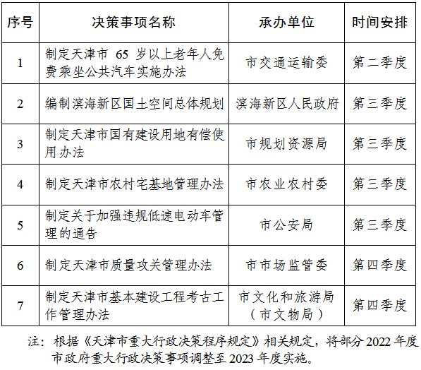 天津市人民政府办公厅关于印发天津市人民政府2023年度重大行政决策事项目录的通知