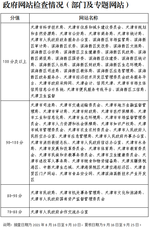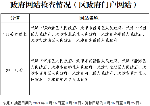 按照国务院办公厅有关政府网站和政务新媒体常态化监管工作要求,天津市组织开展了2021年第三季度政府网站和政务新媒体日常检查,具体情况如下: