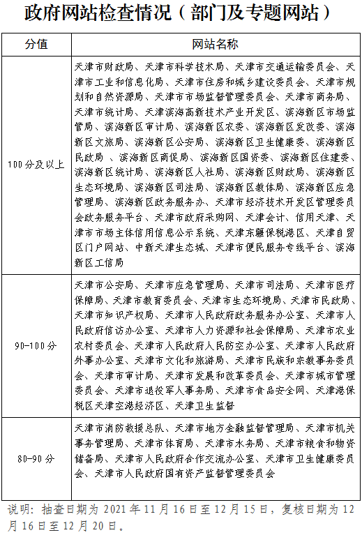 为深入贯彻落实党中央、国务院关于深化政务公开决策部署,按照《国务院办公厅关于印发政府网站发展指引的通知》(国办发〔2017〕47号)、《国务院办公厅秘书局关于印发政府网站与政务新媒体检查指标、监管工作年度考核指标的通知》(国办秘函〔2019〕19号)要求,根据我市政府网站和政务新媒体常态化监管工作安排,2021年下半年,市政府办公厅组织开展了政府网站和政务新媒体建设管理工作检查,现将有关情况通报如下: