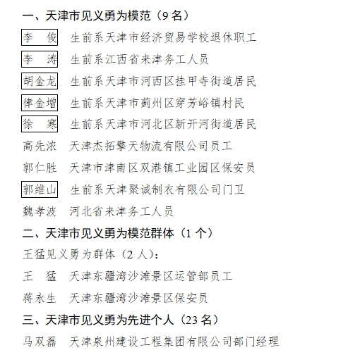 天津市见义勇为模范、模范群体