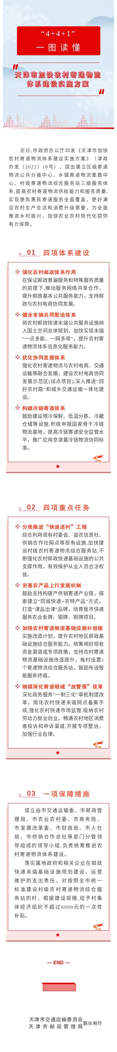 天津市加快农村寄递物流体系建设实施方案“4+4+1”一图读懂