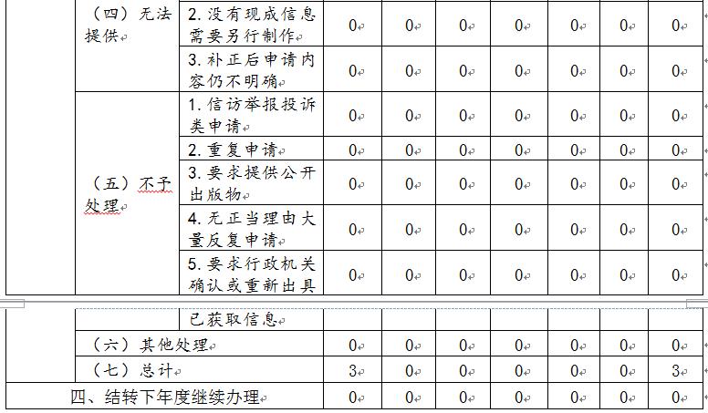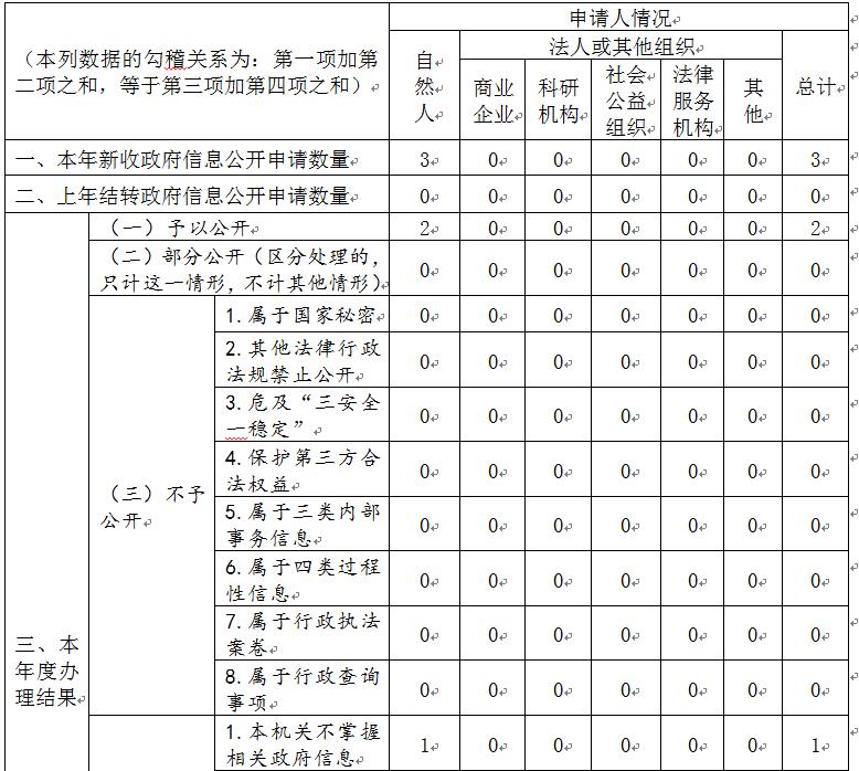 三、收到和处理政府信息公开申请情况